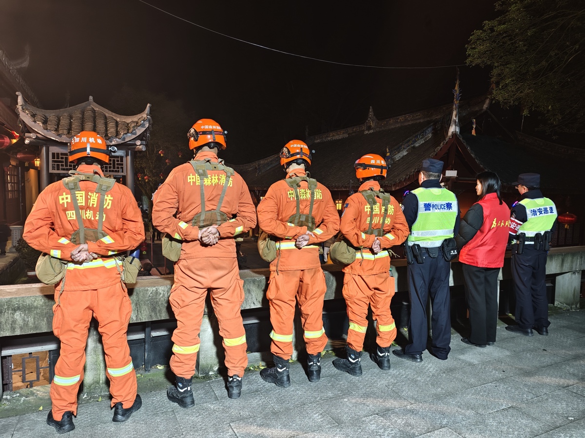 深夜十二点,缙云寺内钟声悠扬,香客们的愿望在除夕的夜空中回荡。刘长松和队友们在寺门口的执勤点稍作休息,手机屏幕亮起,来自东北的视频通话响起:“儿子,新年快乐,今天还在上班吗?年夜饭吃了啥……”父母关心的话语溢出屏幕,刘长松简单和父母寒暄问好,再次回到了防火点的岗位。