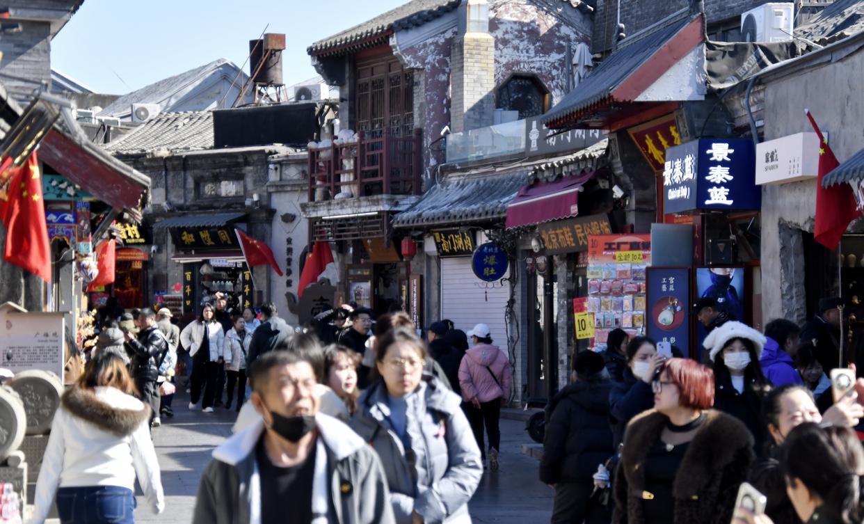 2月18日,游客在北京烟袋斜街游览。新华社记者 李欣 摄