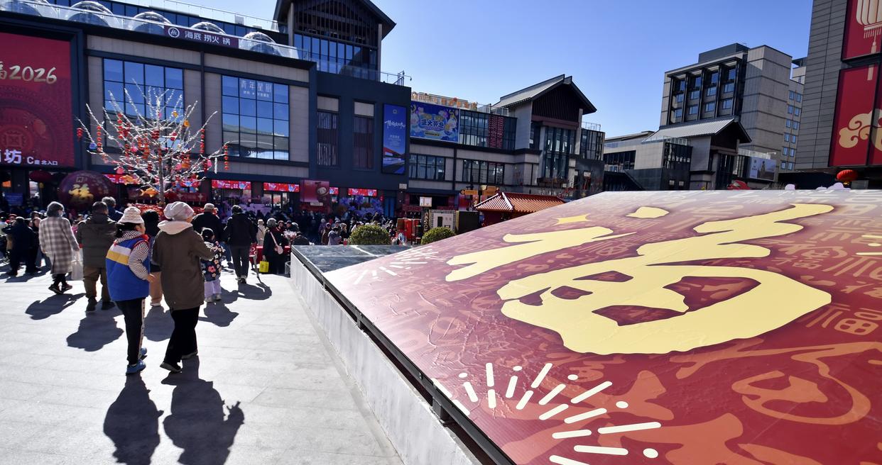 大年初二,市民游客来到北京隆福寺新春市集、后海景区及周边胡同,感受传统气息浓厚的北京年味。