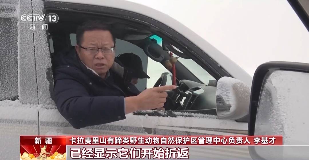 新疆卡拉麦里山有蹄类野生动物自然保护区管理中心负责人李基才:两个小时之前的数据已经显示它们开始折返,顺着风向往西走了,它们必须顺着风,逆着风会受冻。
