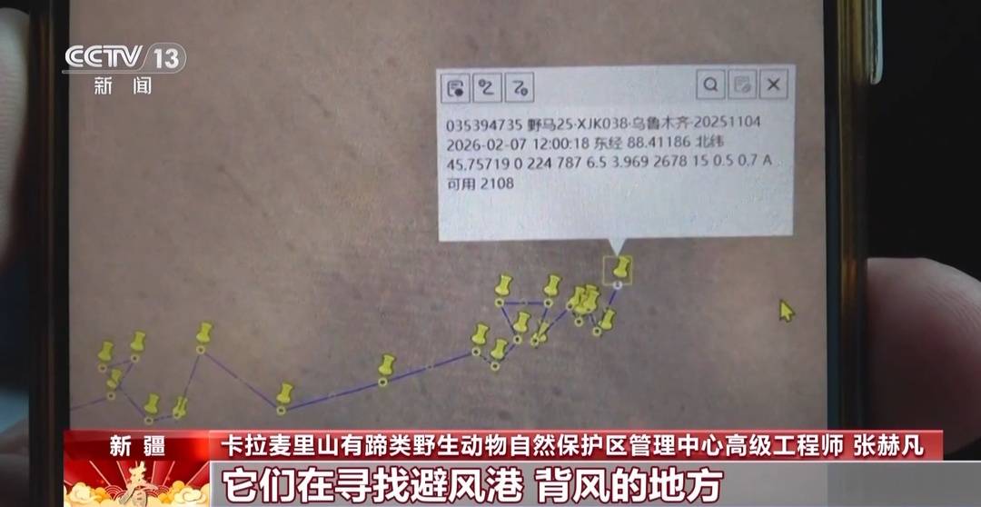 新疆卡拉麦里山有蹄类野生动物自然保护区管理中心高级工程师张赫凡:它今天的轨迹有点乱七八糟的,可能因为大风天气,它们在寻找避风港,背风的地方。