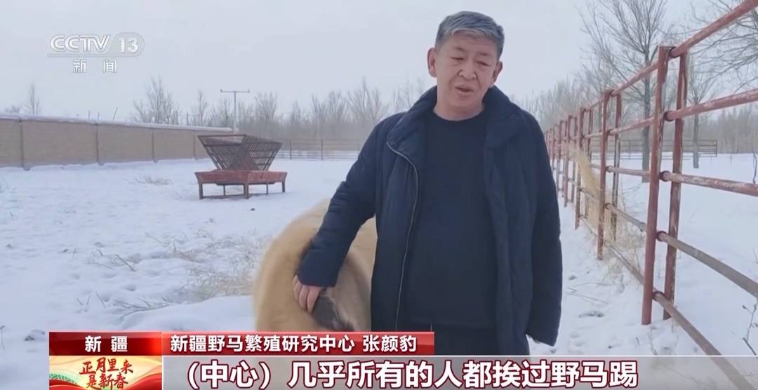 新疆野马繁殖研究中心负责人杨建明:互相要斗,它打不过马,我们也曾经在圈里面训练,把狗放进去,狗被堵在栏杆里逃都逃不出来。模拟在野外碰到狼,训练一下它的天性,我们感觉效果还是可以的。