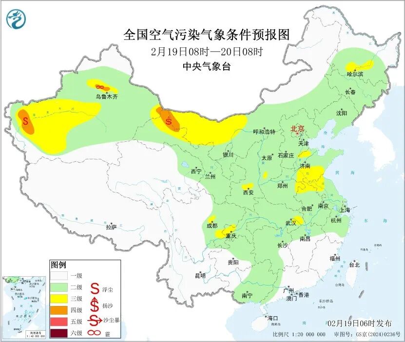 受强冷空气影响,20日至22日,西北地区东部、华北、黄淮、江淮等地将先后有沙尘天气,其中,内蒙古西部、甘肃西部、宁夏北部、陕西北部、山西北部等地的部分地区有沙尘暴,局地有强沙尘暴。未来一周,全国大部地区大气扩散条件较好,仅华北南部、黄淮中部等地的部分地区有间歇性霾天气。