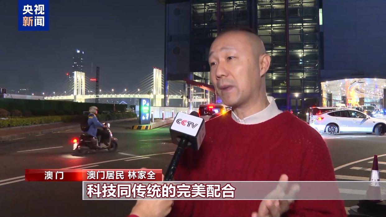 澳门居民 林家全:无人机代表科技,烟花代表传统,科技同传统的完美配合,让我感到非常震撼。我感受到科技的进步,为人民带来的幸福感和愉悦感。最后祝愿祖国繁荣昌盛,国泰民安。