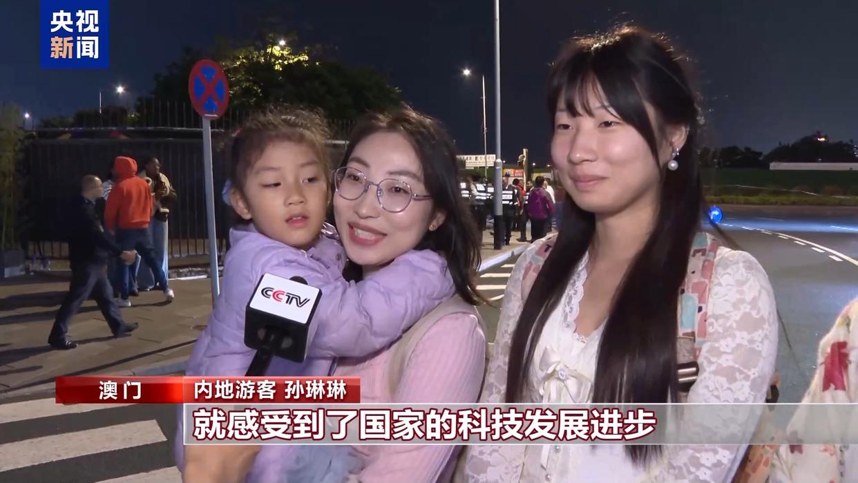 澳门居民 杨荣恩:无人机烟花汇演和花车汇演真的非常好看、非常震撼。我留意到里面有科技创新和传统文化的元素。让我感受到祖国真的很强大。