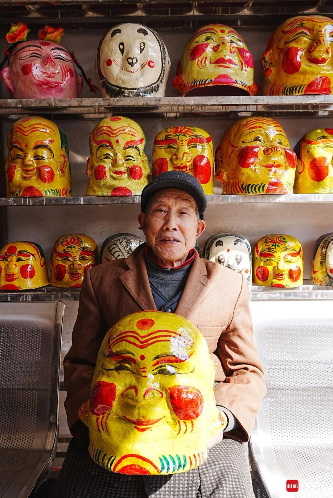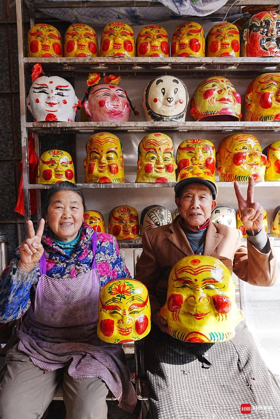 一进腊月,黄家榜就骑着自行车,驮着层层叠叠的面具走乡串镇。青白江、金堂、邛崃、大邑,最远还骑到过重庆。一个面具卖两毛、五角,一个月能卖出一万多个,从来不愁卖。他走到哪里,孩子们就追着笑到哪里,那些憨态可掬的脸,是一代人最鲜亮的童年。