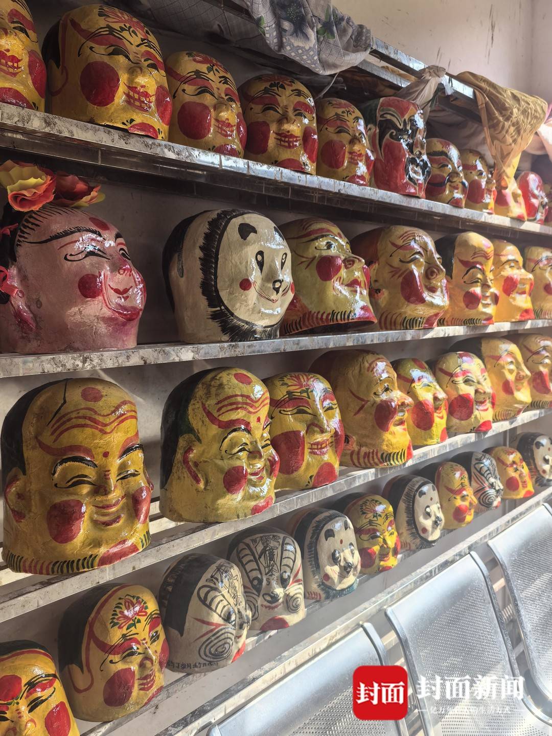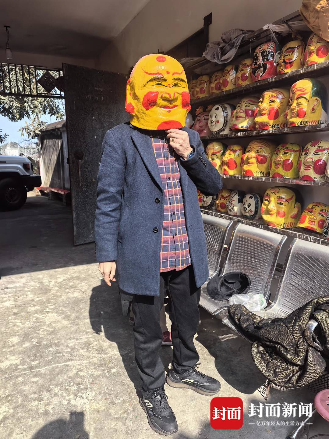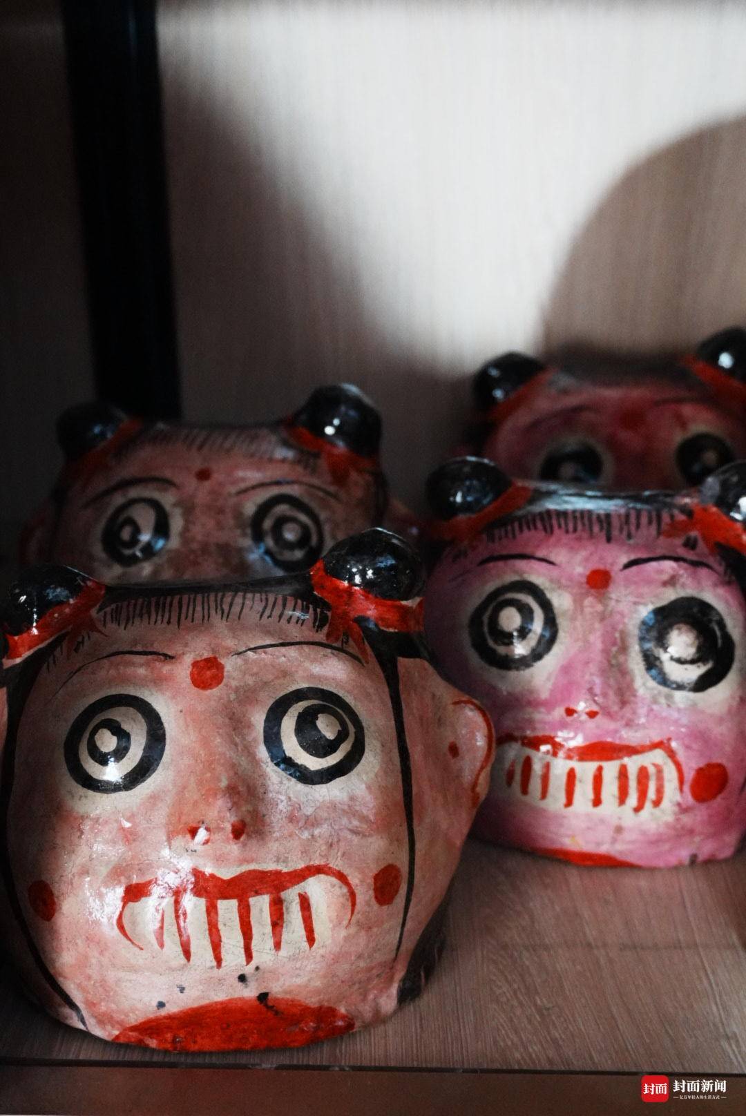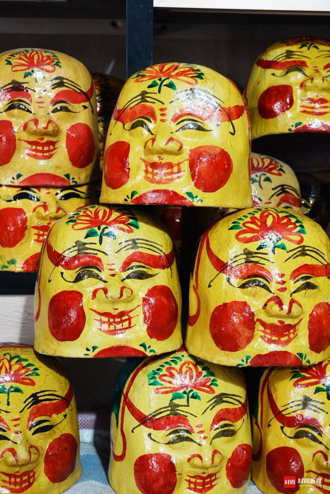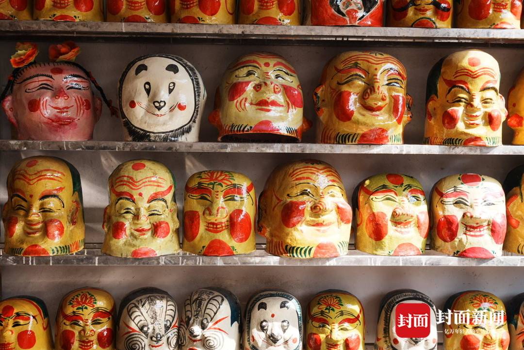 2月10日,北方小年,封面新闻记者推开大邑县王泗镇黄家榜老屋的木门,一屋子憨态可掬的“笑头和尚”面具,猝不及防映入眼帘。