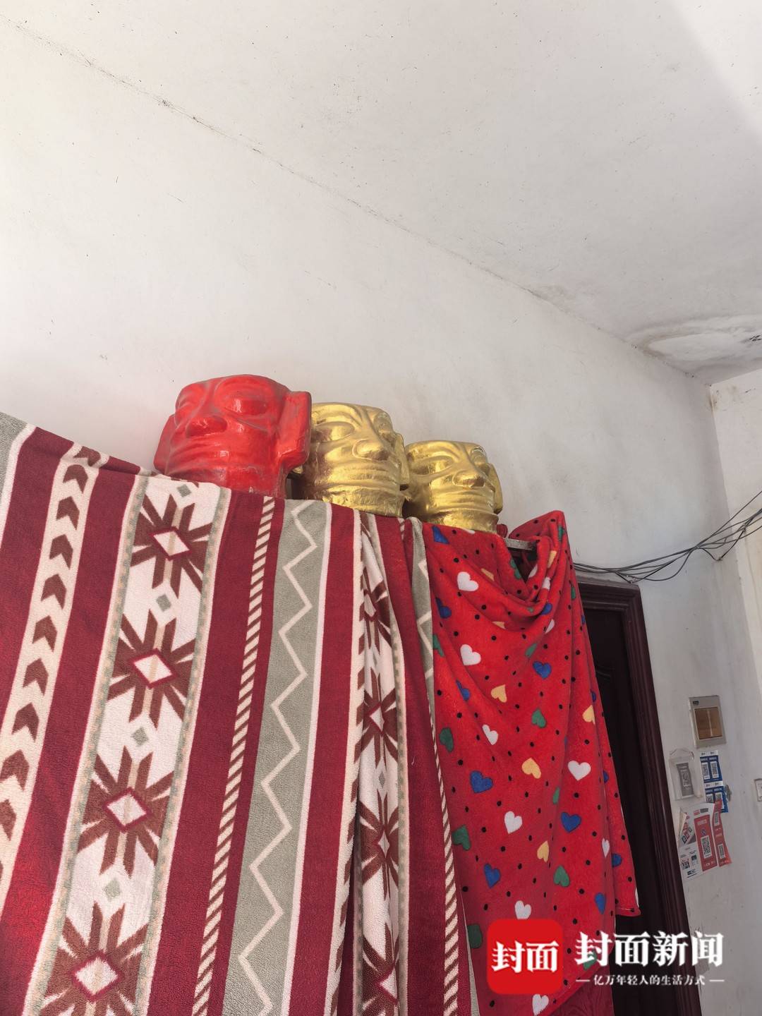 空荡荡的堂屋里,满墙满架的笑头和尚依旧眉眼弯弯、喜气洋洋。招呼着记者坐下后,黄家榜沉默着将一个个被碰乱的笑头和尚重新摆正、码齐,随后“啪”地关上堂屋大灯,一屋的面具重新隐入了黑暗之中。