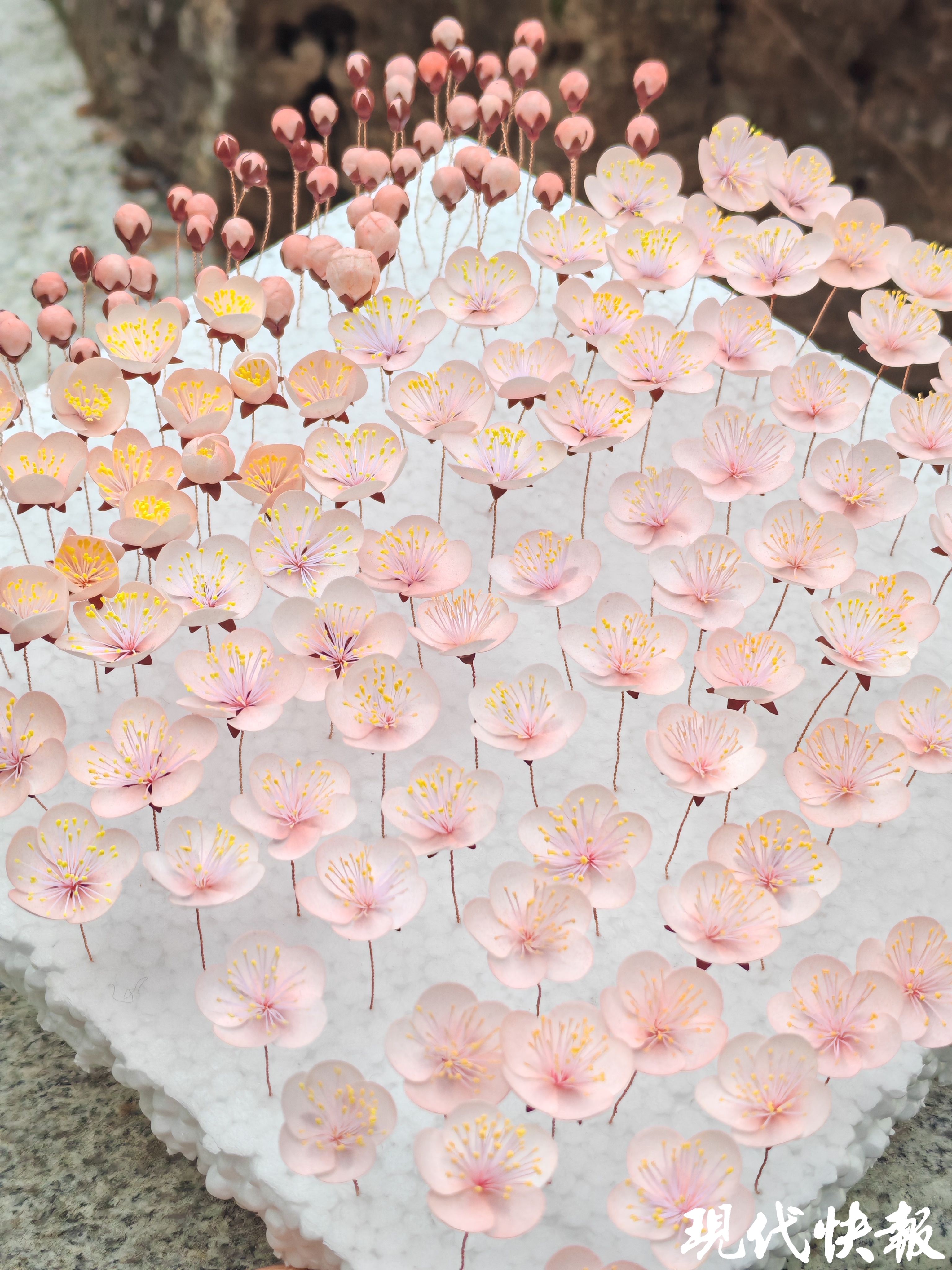 “春晚这个节目展现的是十二花神,对应十二个月的时令花卉。如果使用鲜花,根本无法实现所有花神同时登台绽放。节目艺术顾问邹同老师联系我,希望能用通草花呈现十二花神同台竞艺的惊艳效果。”朱欣告诉记者,2025年12月底她接到了十二花神制作的任务,“当时特别开心,但压力巨大,因为制作的时间非常紧张。”