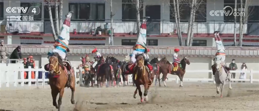 在陕西榆林,锣鼓喧天、红绸飞舞。来自全国多地的30多支秧歌队伍轮番登场,扭秧歌、闹新春,为大家送上节日的祝福。在安徽祁门,现场制作的豆糖嵌入“马”字、“福”字,承载着人们对新年的美好期盼。在西藏拉萨,藏历新年传统马术表演引来观众阵阵喝彩,为节日增添欢乐的氛围。