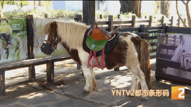 云南野生动物园工作人员 杨羽茜:“别看它矮矮小小,但是可以驮的重量是它体重的2倍,身体也比较结实,性格比较温顺、比较亲人的一种小马,英国以前的贵族就会把它当作孩子的玩伴,和孩子一起成长、一起长大。”