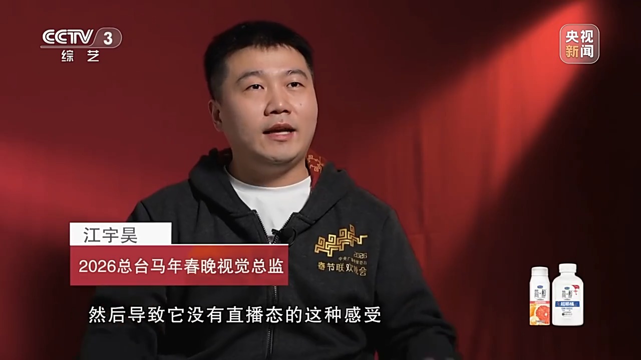 江宇昊:打破以往大面积使用虚拟去遮观众,或者是虚拟含量过大,然后导致它没有直播态的感受,我们今年是又回归到了现场联播感的一些视觉态。所以我觉得,大家看完今年春晚应该能感觉到今年视觉的变化就是我们的现场感和直播态的感觉,这种状态是增强了很多的。在保留了现场感的情况下,我们还是努力做到了非常多的沉浸感的实施。