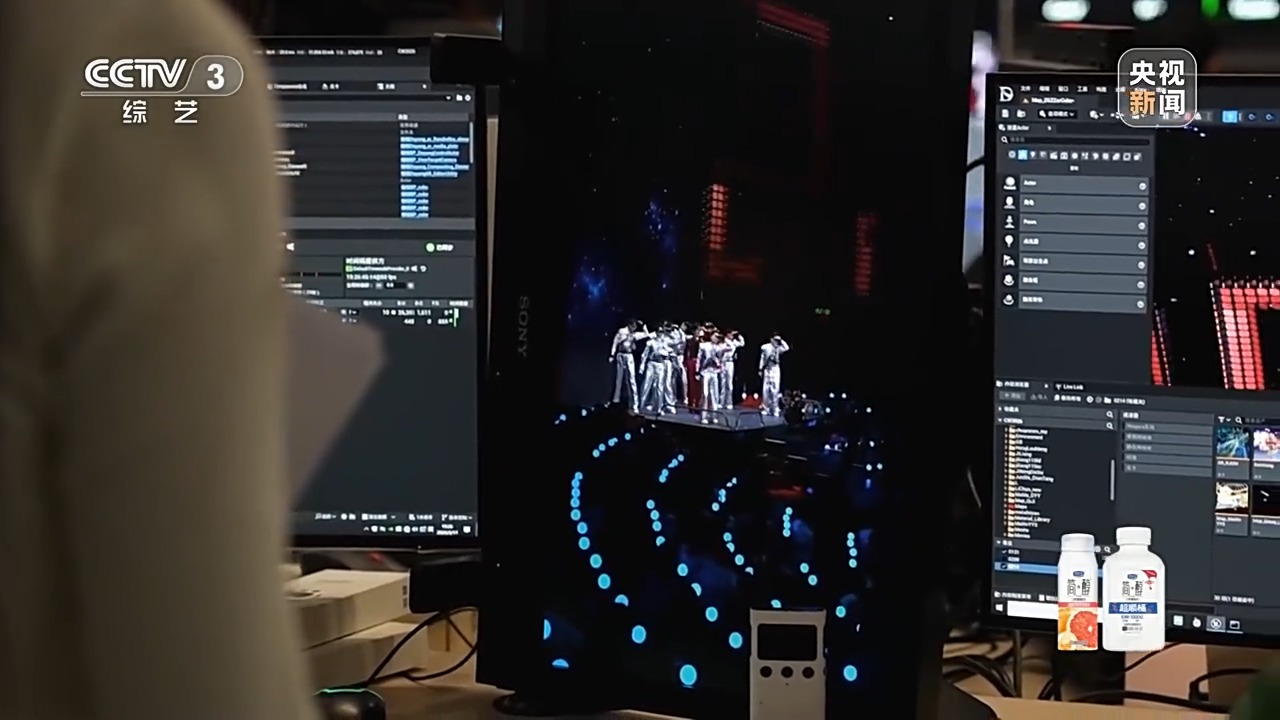 今年的春晚演播大厅还部署了依托AI技术驱动的实时互动系统,以演员表演为核心纽带,实现大屏影像、虚拟特效、舞美道具、舞台灯光等多个系统的高效联动。杂技节目中,特制LED道具与光影及音乐精准同步,演员化身为“空中画笔”,绘制了充满想象力的视觉奇观;歌舞节目也呈现出虚实交织、人景合一的精美特效。