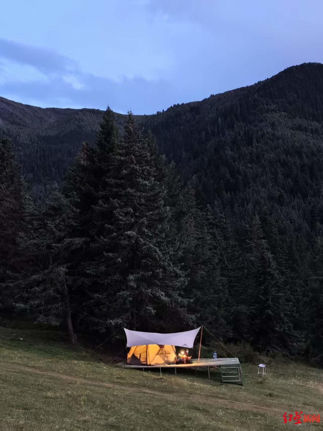 蔡女士一家在都江堰一处山间的营地中露营