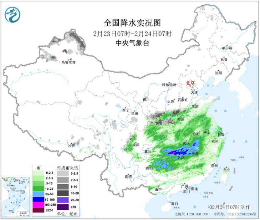 另外,25日至27日以及28日至3月2日,黄淮及其以南地区将先后有两次大范围降水过程,需要关注江南、华南等地部分地区雨势较强。其中25-27日,西北地区东部、内蒙古东部、华北北部、东北地区小到中雪或雨夹雪;江淮、江南、华南、贵州东部等地小到中雨,局地大到暴雨。