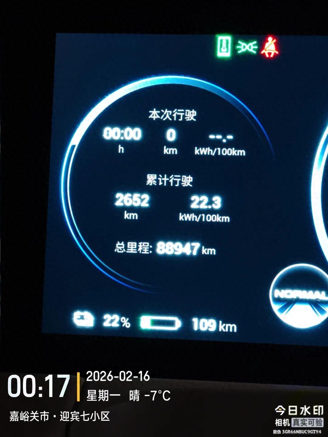 2月13日到2月16日,三天两晚,从杭州到甘肃嘉峪关2700公里,充电18次。