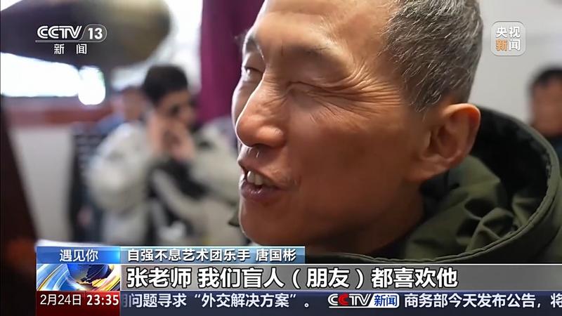 自强不息艺术团乐手唐国彬:张老师,我们盲人朋友都喜欢他。