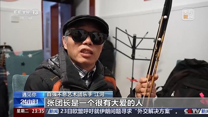 自强不息艺术团乐手江河:张团长是一个很有大爱的人。