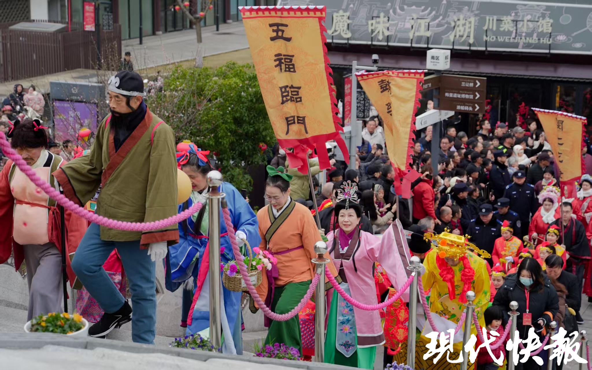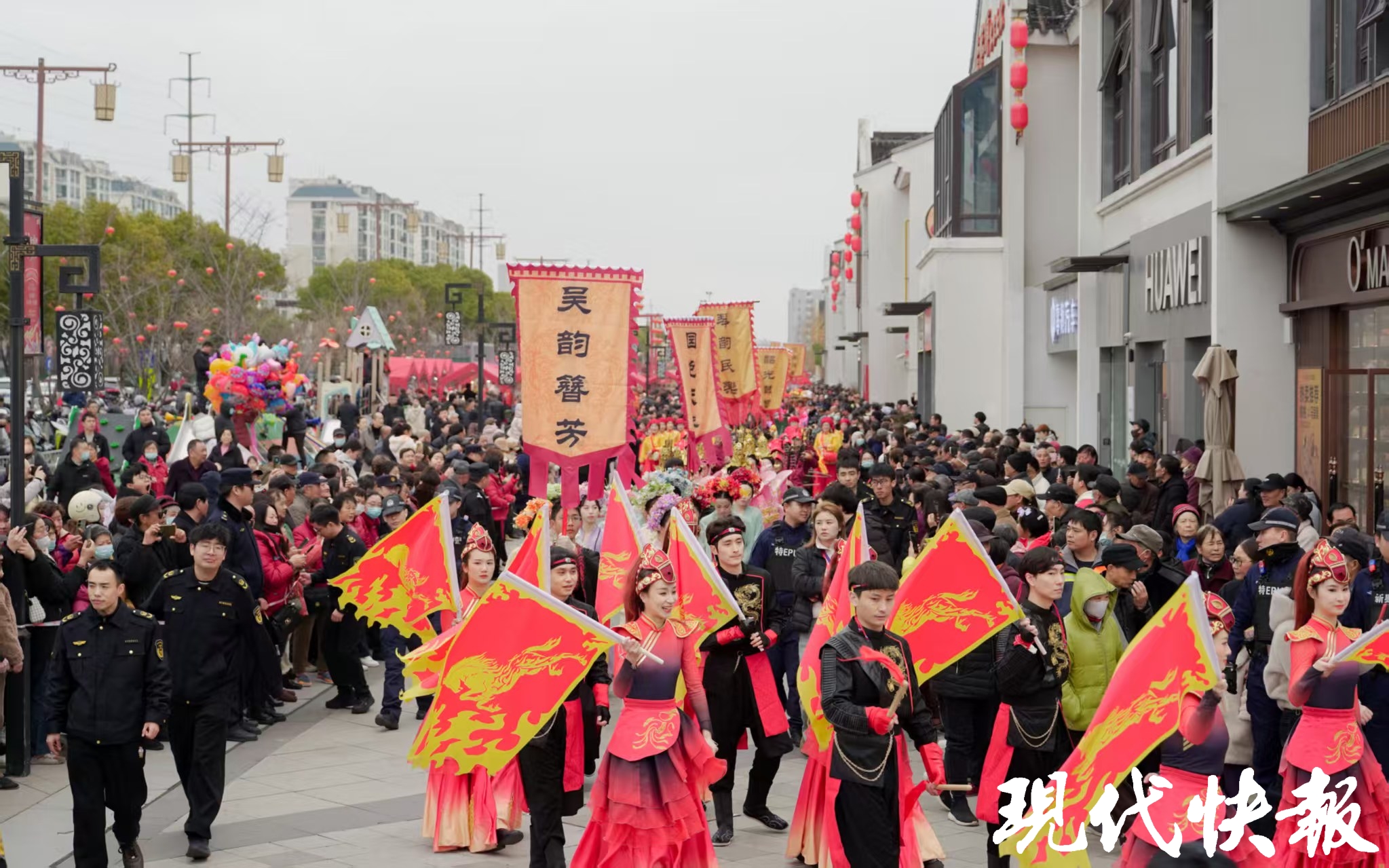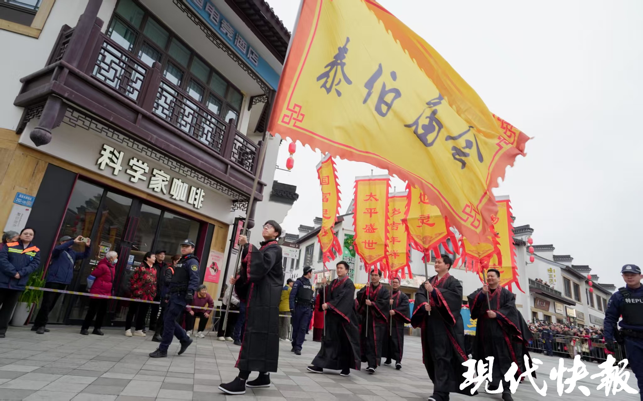 2月25日(正月初九)上午,世界非遗泰伯庙会在无锡梅里古镇如约举行。今年庙会以“奔吴”为主题,现场人潮涌动,万民同乐,沿街观众摩肩接踵,笑声、掌声此起彼伏,将千年民俗盛宴推向新的高度,也让“万人空巷”这一成语具象化了。