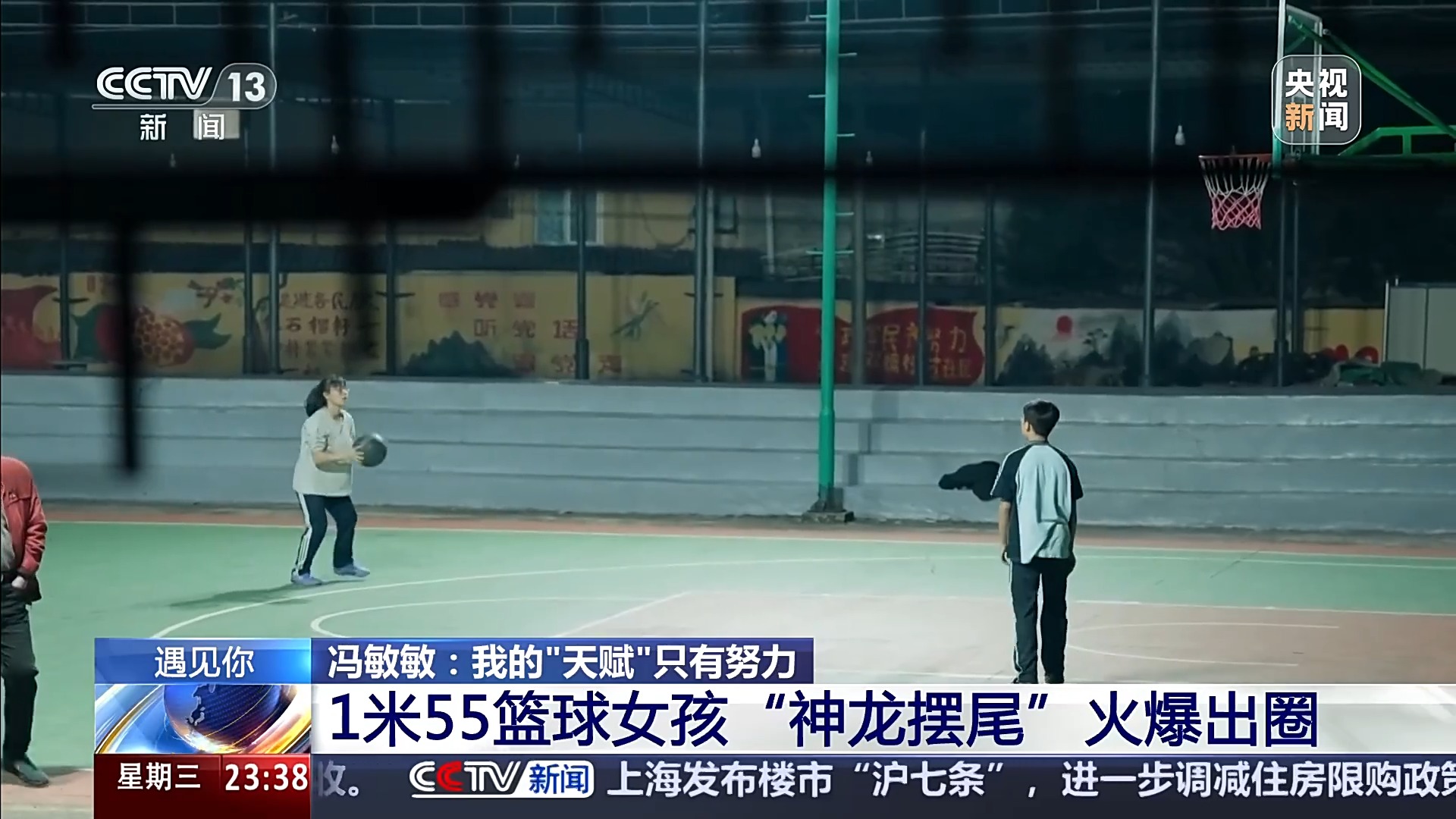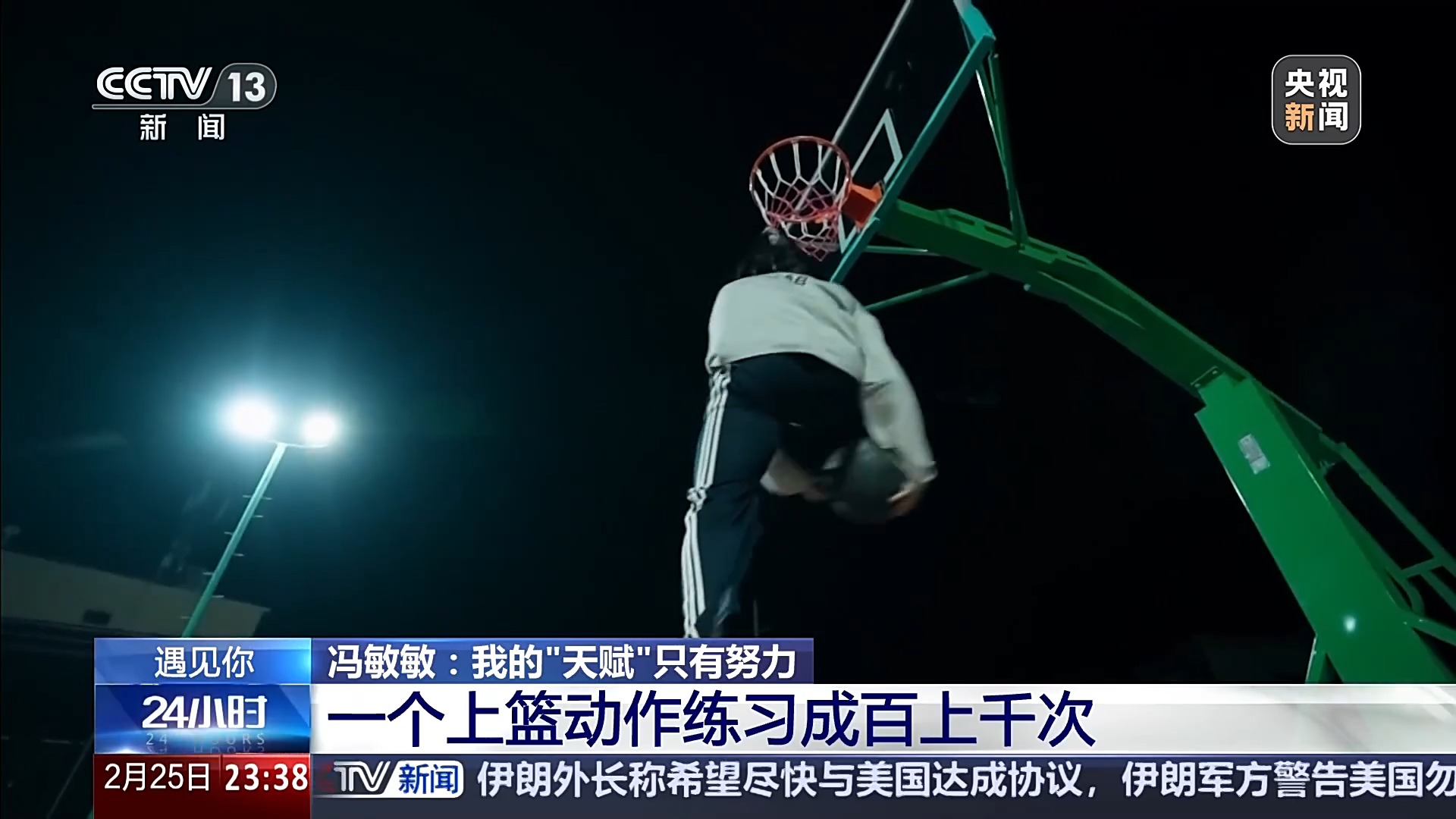冯敏敏的“神龙摆尾”不是一天练成的,她练了成百上千次。有时在村里的篮球场,有时在家门口的篮球架下。