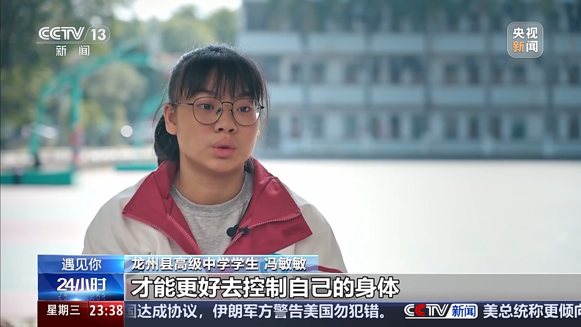 龙州县高级中学 学生 冯敏敏:先考个好点的大学。然后如果可以的话,我开个球馆,然后教小朋友打球,或者是去当个老师之类的。能让他们喜欢上体育,然后教学生的话,我自己也享受这个过程。