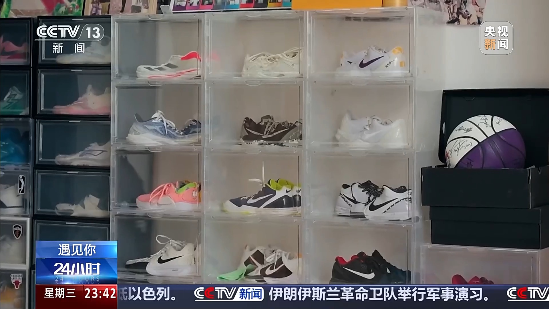 走进冯敏敏的房间,陈设简单,但墙边整齐摞着的鞋盒颇为醒目。一些鞋子已经穿旧了、坏了,但这些磨损的篮球鞋仍旧被她用心保存着。