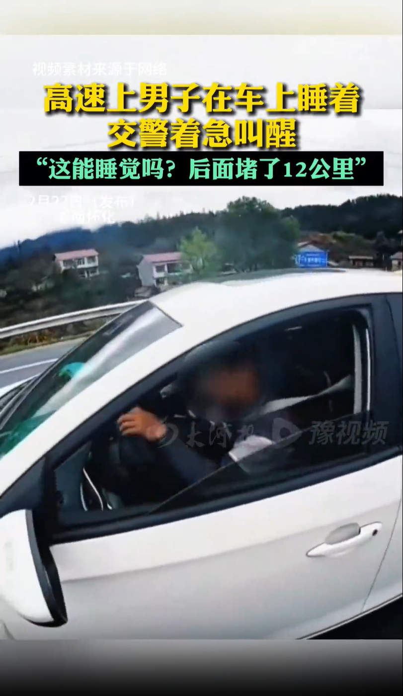 日前,据媒体报道,湖南怀化的高速上,一名男子在车上睡着,导致后方车辆拥堵12公里,交警紧急将其叫醒:“这地方能睡觉吗?赶紧开走!”网友:这也能睡着,心真大!