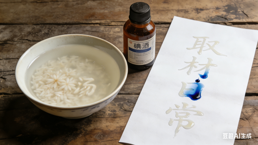 当时的密写术延续了“取材日常”的智慧,最常用的组合是米汤与碘酒。米汤中的淀粉遇碘酒会发生化学反应,显现蓝色字迹,而这两种原料在各地都极易获取。