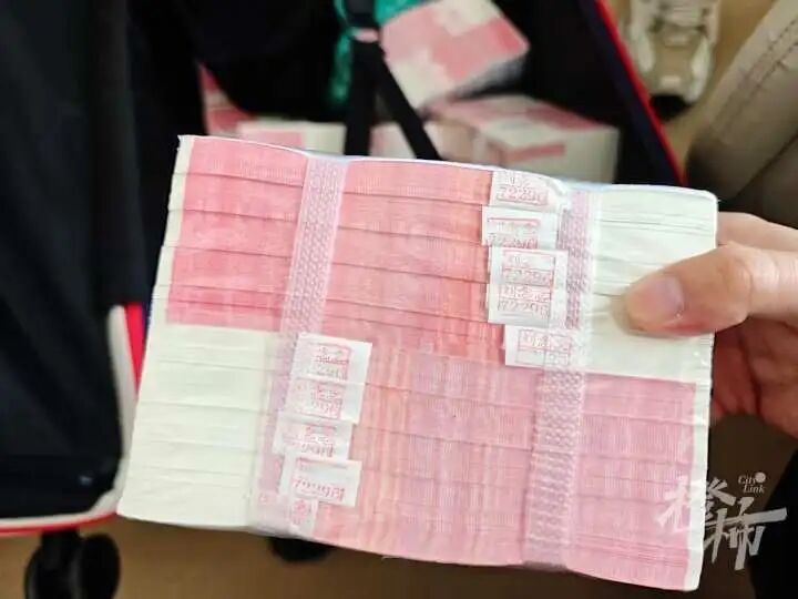 姚越操说,当时拿起一捆,分量比较轻,不像有十万元,仔细查看,表面还有中国建设银行的封签,还盖着银行员工的姓名章,“并且没有练功券的字样,很像是真正的现金。”