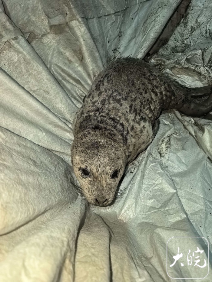 随后,大皖新闻记者联系上了当地居民秦女士。秦女士称,斑海豹幼崽是2月25日下午4点左右被人发现的,渔政部门人员此后赶来救助。25日傍晚,秦女士也到了救助现场。她提供给大皖新闻记者的现场视频显示,斑海豹幼崽趴在皮卡车车斗里东张西望,憨态可掬。