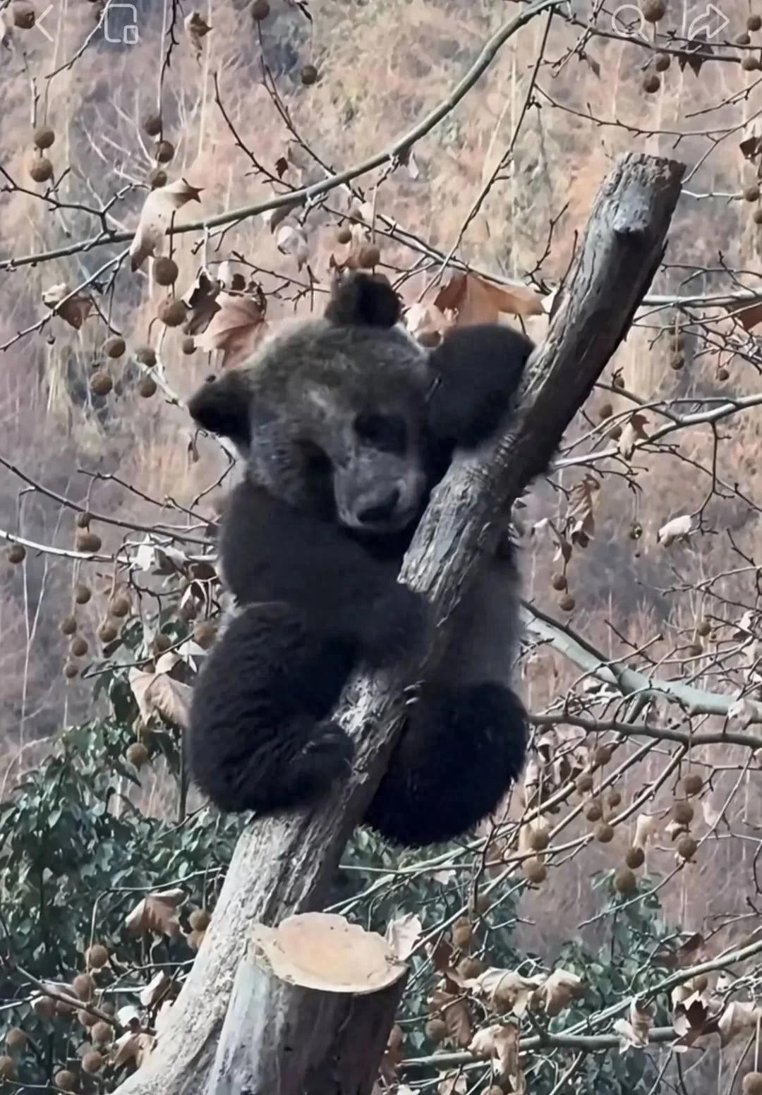在网友上传的视频中,这只小家伙挂在树枝上,浑身黑乎乎的模样与人们印象中黑白分明的大熊猫截然不同,反差感十足。“黑煤球”“黑熊精”“挖煤小熊”等可爱昵称也随之走红。