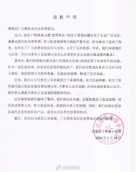 近日,济南一家名为“绝情臭豆腐”的店铺,因一起请假纠纷引发关注。