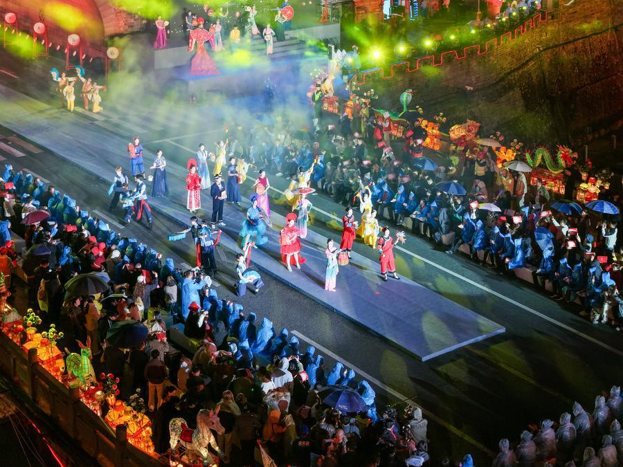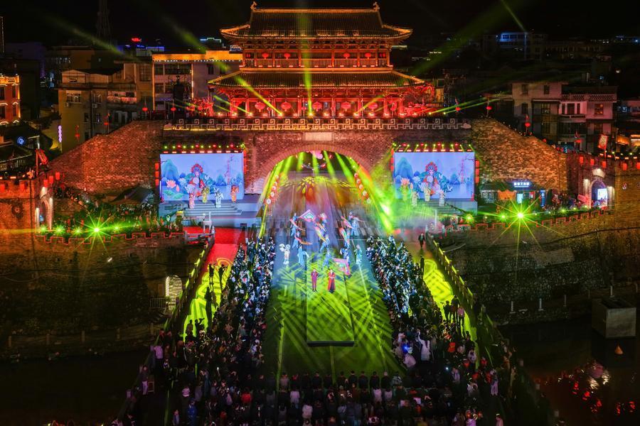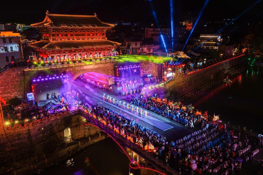 长汀“非遗奇妙夜”现场(无人机照片)。新华社发(肖和勇摄)
