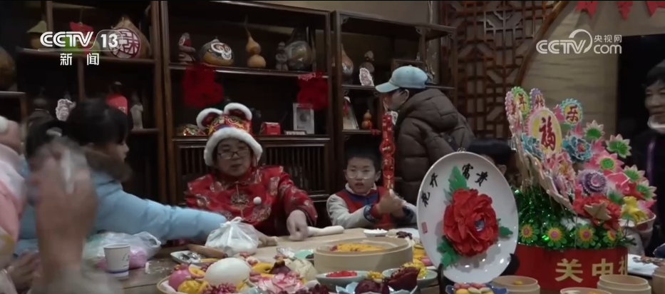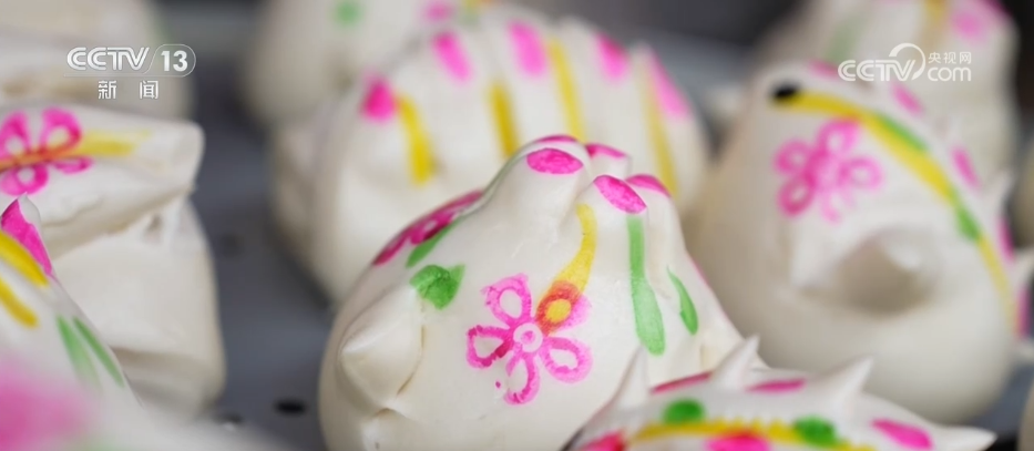 家常花馍抚慰味蕾,而色彩斑斓、造型精美的花馍则带来了视觉享受。为增添喜庆氛围、讨个好彩头,手艺人用红、黄、绿等彩色面团,捏出福袋、花朵等造型,让原本普通的主食变成了春节期间的独特风景。花馍制作全凭手工,既考验制作者的巧思,更是一门指尖上的技艺。花馍制作手艺人郑习灵称:“像我手里拿的这个福袋,这个红色是加入了甜菜根,这个粉色是加入了仙人掌果粉,绿色是用菠菜汁。面团得经过揉、捏、擀,最后才能做出这样造型。”