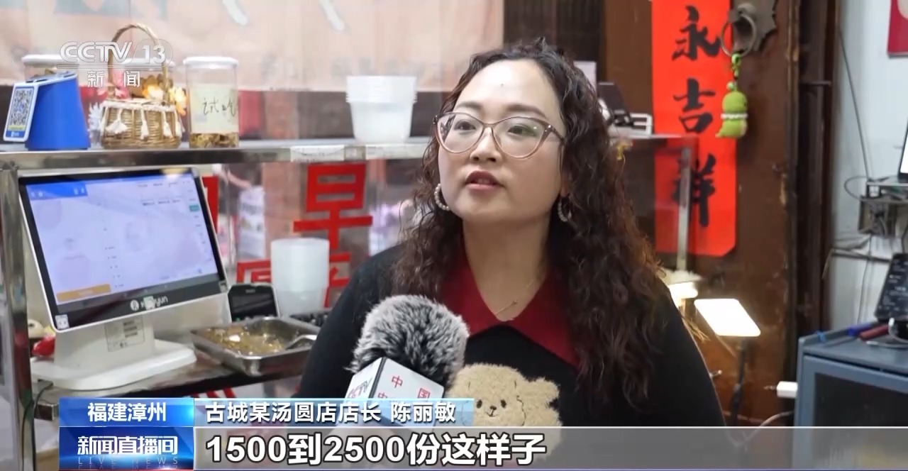 古城某汤圆店店长 陈丽敏:红糖汤圆是元宵节必吃的,我们差不多单天售卖1500到2500份,订单一般都会提前预订,也有很多单位、学校会在当天下单。