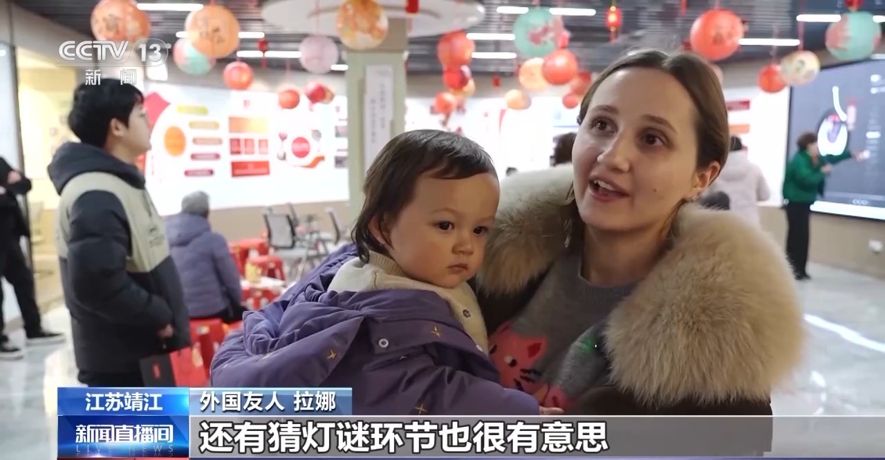 外国友人 拉娜:我儿子对歌舞环节更感兴趣,玩得特别开心。猜灯谜环节也很有意思,有中文问题也有英文问题,对我来说回答起来都很轻松。
