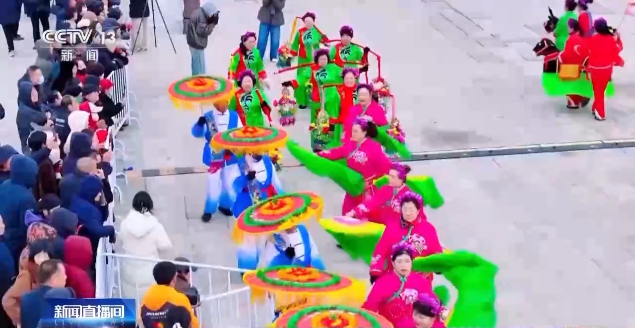蒙古族筷子舞热情奔放,广东潮汕的布马舞灵动俏皮,陕北秧歌、安塞腰鼓热情豪放,南北民俗表演轮番登场,街头巷尾洋溢着浓浓的节日氛围。