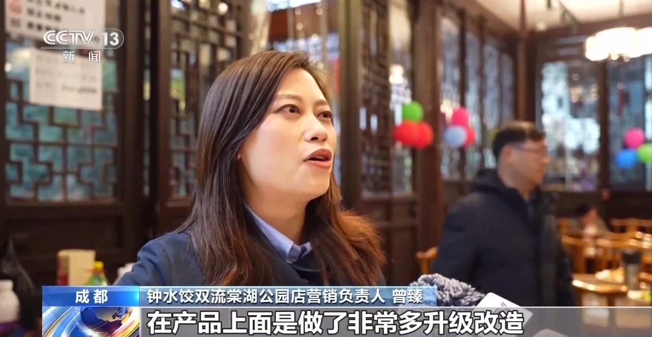 钟水饺双流棠湖公园店营销负责人曾臻:我们在产品上做了很多升级改造,比如海棠千雪酥和海棠米糕。通过产品创新,希望大家能感受到我们的巧思。