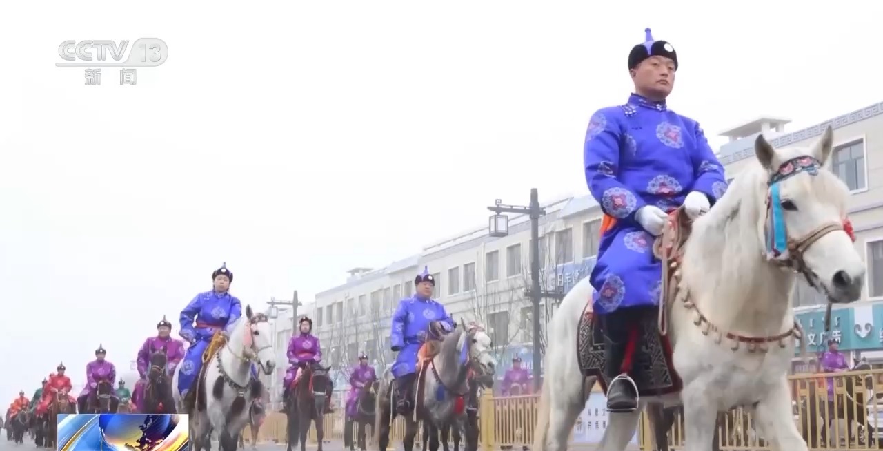 在鄂尔多斯市乌审旗,上百名农牧民与乌兰牧骑队员身着盛装,策马巡街,观众纷纷驻足拍照。当地还开展舞龙舞狮、传统秧歌、腰鼓等展演活动。