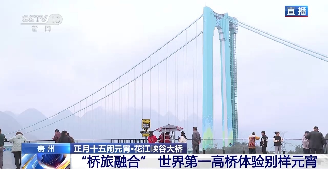 在今年春节假期中,位于贵州的世界第一高桥——花江峡谷大桥迎来了大量前来观光的游客。宏伟的大桥加上丰富的业态,让这里成为春节假期中人气爆棚的出游打卡地。戳视频,跟随总台记者尹平看看在世界第一高桥上过元宵节有何不同。