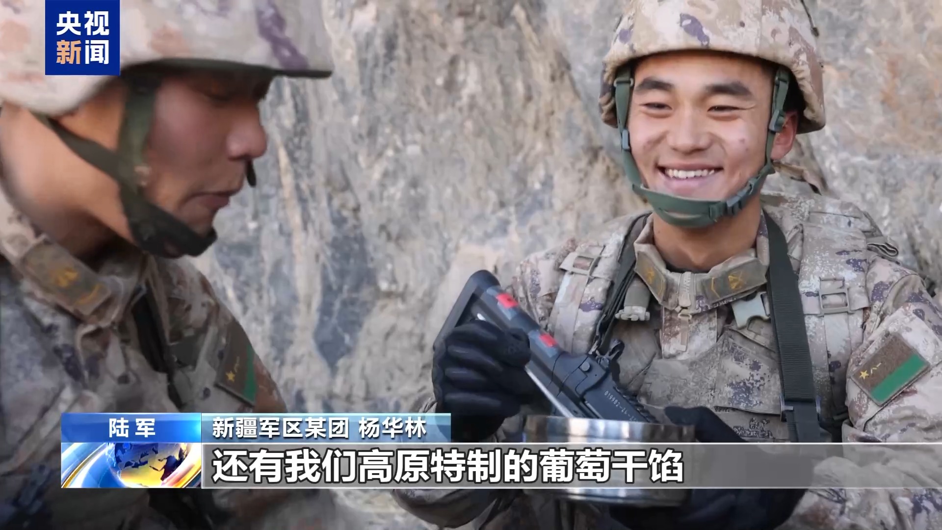新疆军区某团 杨华林:高原条件有限,我们就想办法创新。今天这汤圆,不仅有传统的芝麻馅,还有我们高原特制的葡萄干馅。