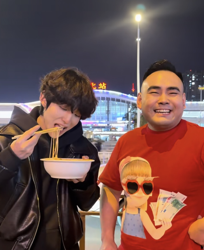 视频走红后,小朱又来到孔先生店里吃面,孔先生再次拍摄下他吃烫面的身影,他们还站在淮北火车站前,拍起了宣传家乡的视频。有网民调侃,孔先生把小朱当“抖+”用,利用小朱的颜值拍视频引流,孔先生笑着回应:“毕竟这泼天的富贵来了,咱得接住呀。”他坦言,“毕竟我们这种做小生意的普通人,不是每个人都能体验到这种一夜爆火的感觉。”