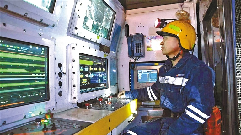 “以前我们采煤,是‘人海战术’,一个工作面百十号人,工友们在煤尘中扛设备、拼力气,全凭经验。”已在井下工作20多年的班长乔生财,如今是智能工作面的“指挥官”之一。“如今我们依托透明地质模型和导航系统,自动规划最优切割路径。操作员确认后,采煤机就能自主‘走刀’,液压支架自动跟进支护,煤炭通过智能运输系统源源不断运出。”他指着屏幕上流动的采煤机图标说,“现在我们一个班只需十几个人,效率却提升了30%以上,关键是安全得到了根本性保障。”