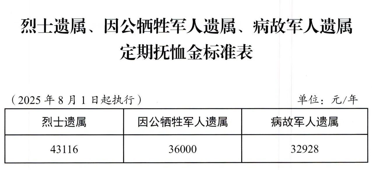 记者从浙江省退役军人事务厅获悉,日前,省退役军人事务厅、省民政厅、省财政厅转发《退役军人事务部 财政部关于调整部分优抚对象等人员抚恤和生活补助标准的通知》。结合《浙江省军人抚恤优待办法》和浙江抚恤补助标准自然增长机制等政策规定,决定从2025年8月1日起调整部分优抚对象等人员抚恤和生活补助标准。