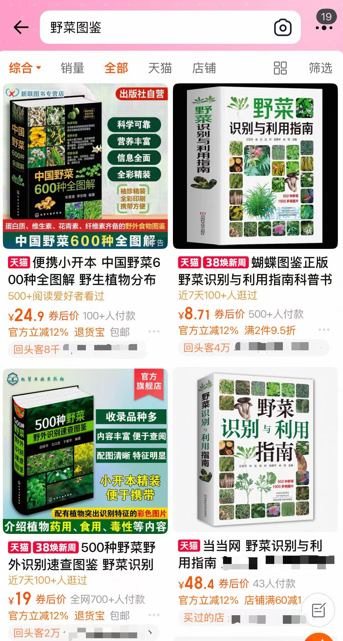 “打野”的快乐,一半藏在“找”的惊喜里,一半藏在“辨”的趣味中。有不少网友分不清,为了心中有谱,特意带上野菜图鉴书出门。在社交平台上,各种野菜图鉴书成了“打野”小白们的新宠。