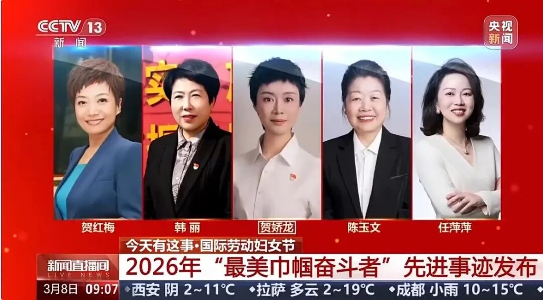 贺娇龙入选“最美巾帼奋斗者”。