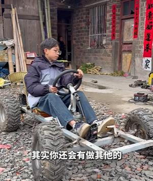 没有老师教,他就对着网上的教程一点一点学。两个半月筹备,一天半组装,这辆最高时速30公里的电动车,终于在村道上跑了起来。