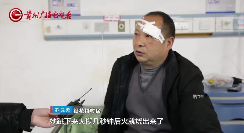 银花村村民 罗良勇:她跳下来大概几秒钟火就烧出来了,我不喊她跳的话,后果不知道会怎么样。我心里想的就是把她救下来,没什么其余想法。