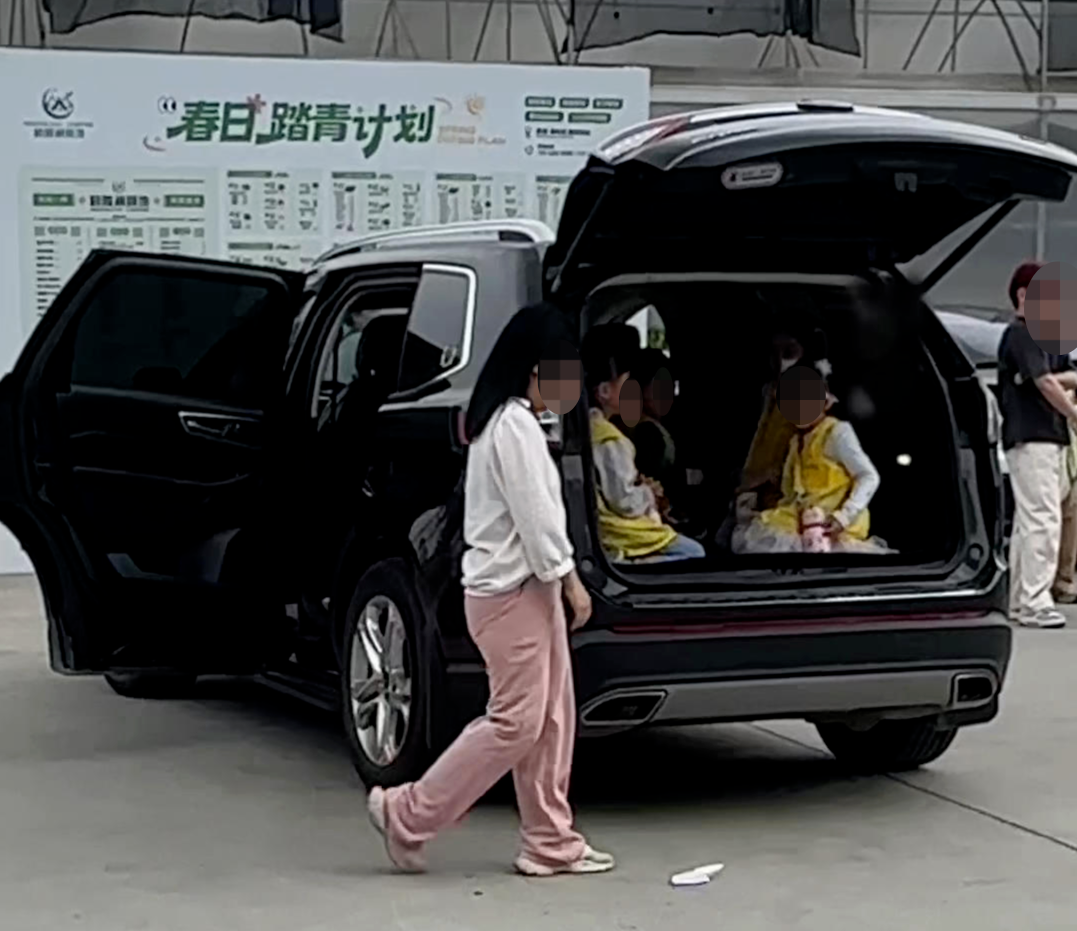 邱先生告诉红星新闻记者,涉事研学机构运送学生上车时,他就站在旁边目睹并用手机拍摄下来。记者获得的视频显示,事发时一辆黑色SUV轿车旁站着六名学童,一名女子将车辆尾门打开,随后将四名学童抱进后备箱内关闭尾门,剩余两名学童则被安排在后排座位。