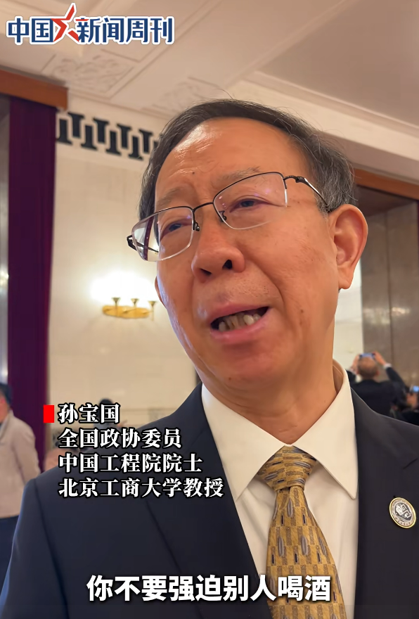据中国新闻周刊,3月8日,全国政协委员、中国工程院院士、北京工商大学教授孙宝国在接受中国新闻周刊采访时表示,年轻人反感酒桌文化,不是酒本身不好,而是醉酒伤身。应摒弃酒桌文化中的糟粕部分,不要劝酒,“你不要强迫别人喝酒,也不要劝。”
